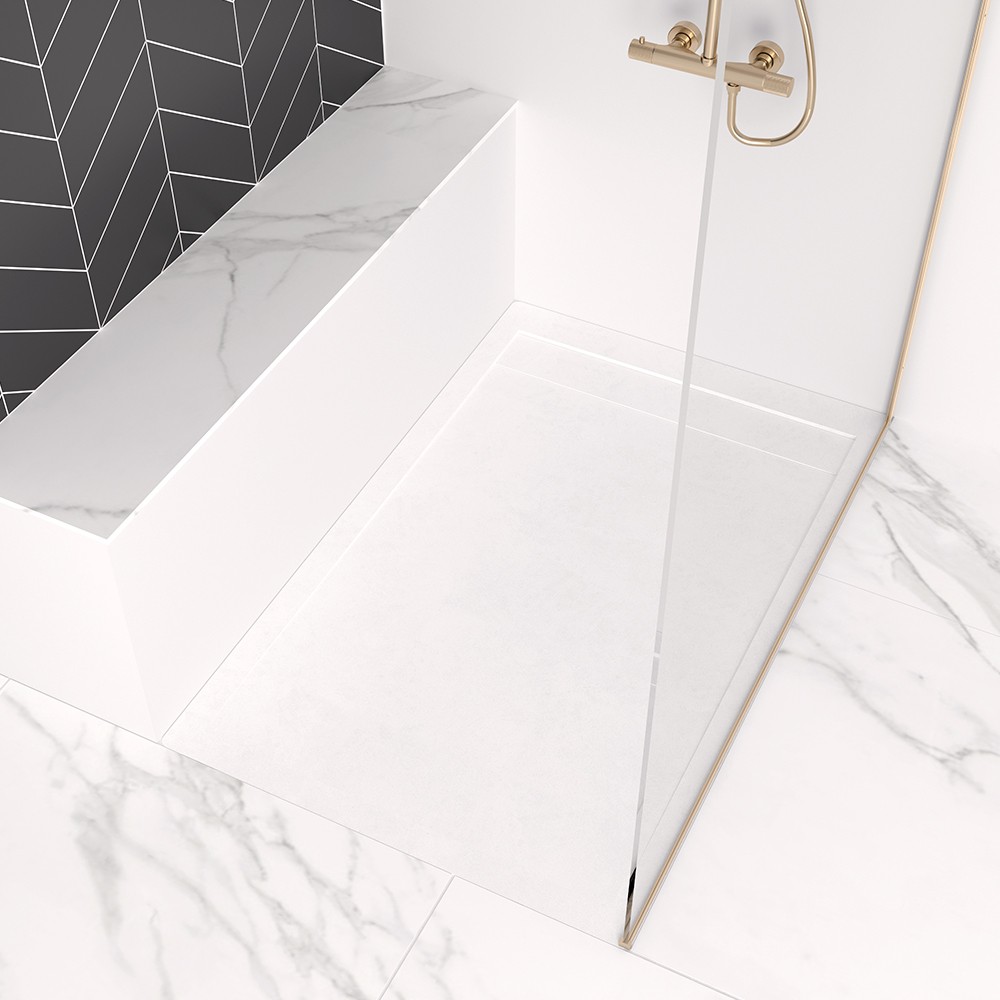 Receveur de douche extra-plat en résine bi-composant avec finition effet pierre naturelle. Antidérapant et antibactérien, il est recoupable et disponible en plusieurs dimensions et coloris. ( O’DESIGN )