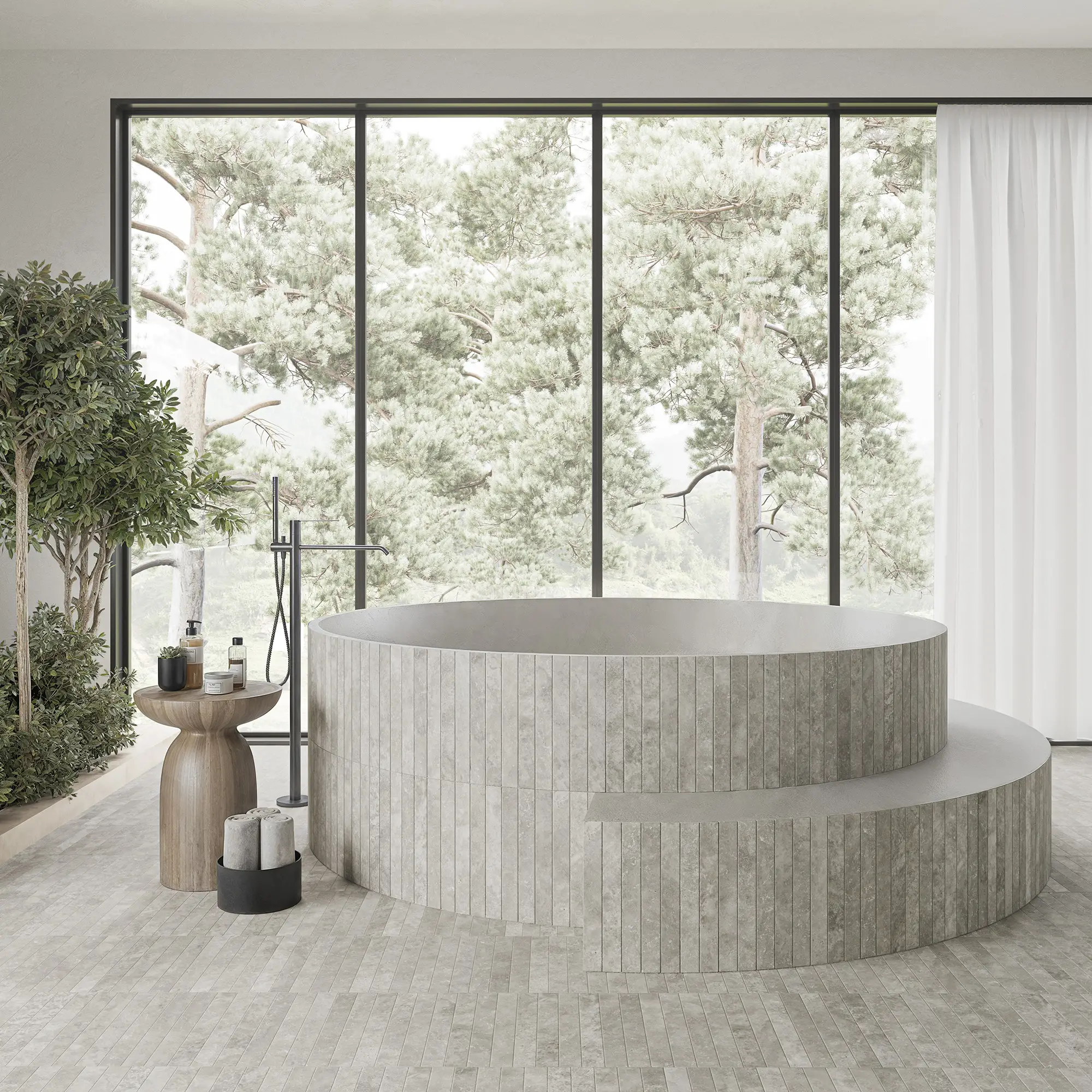 Collection Cross Cut de WoW, Met en valeur une technique de coupe perpendiculaire aux strates de la pierre, créant une texture unique et graphique. Proposée en plusieurs formats et trois teintes elle combine modernité et élégance pour s’adapter harmonieusement à tout type d’intérieur. Usine d’ESPAGNE.