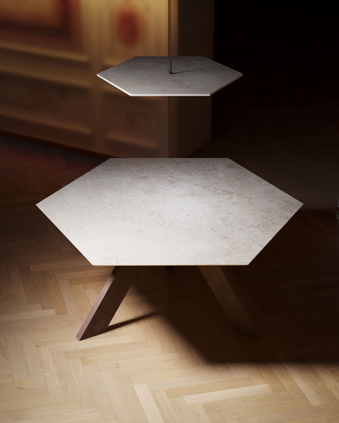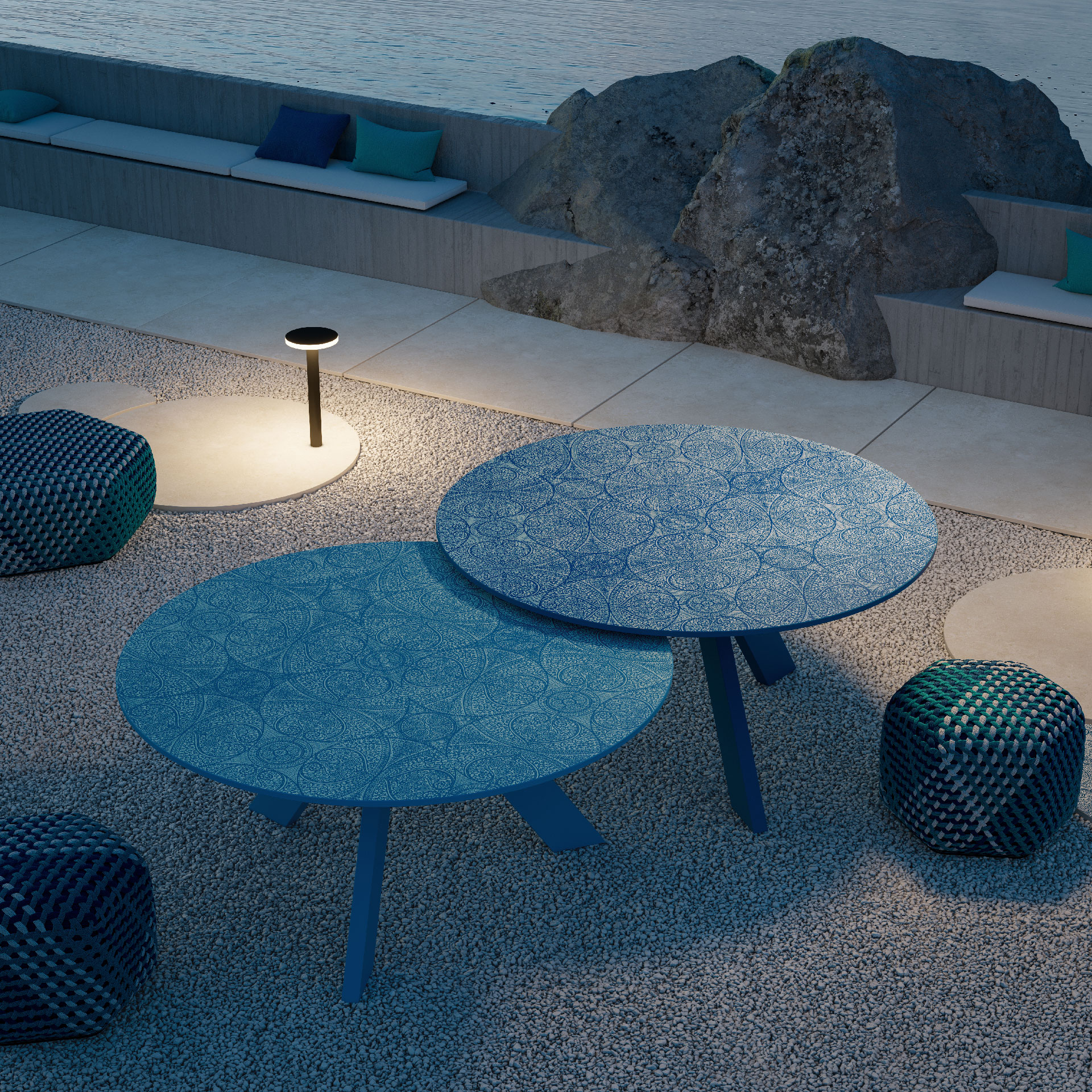 Tables personnalisables conçues par Terza dimensione, permettant de choisir la taille du plateau, le type de carreaux et le style des pieds pour créer un mobilier unique et adapté à tout espace.